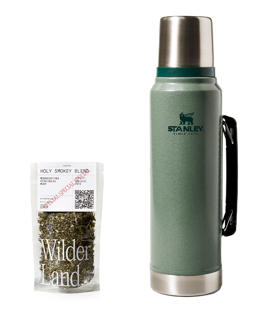 Het voorjaar komt eraan, tijd om de natuur in te trekken! Geniet onderweg van een lekkere kop warme thee van Wilder Land. Deze thee wordt gemaakt van inheemse, wilde kruiden die op het boerenland worden gezaaid. Zo helpt Wilder Land bijen, vogels en vlinders in Nederland. En met de stoere thermosfles hou je je drankje goed warm.