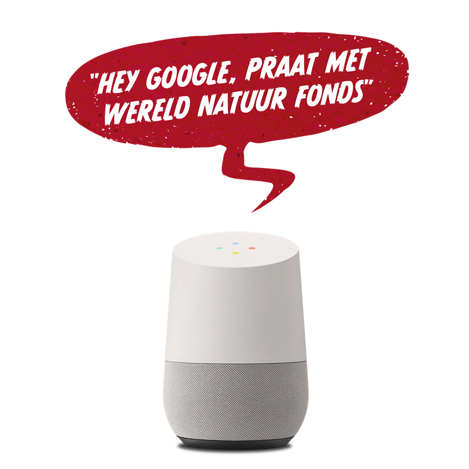 Via de Google Voice-applicatie op je Google Home Speaker, telefoon of tablet sta je vanaf nu op een compleet nieuwe manier in contact met WWF.