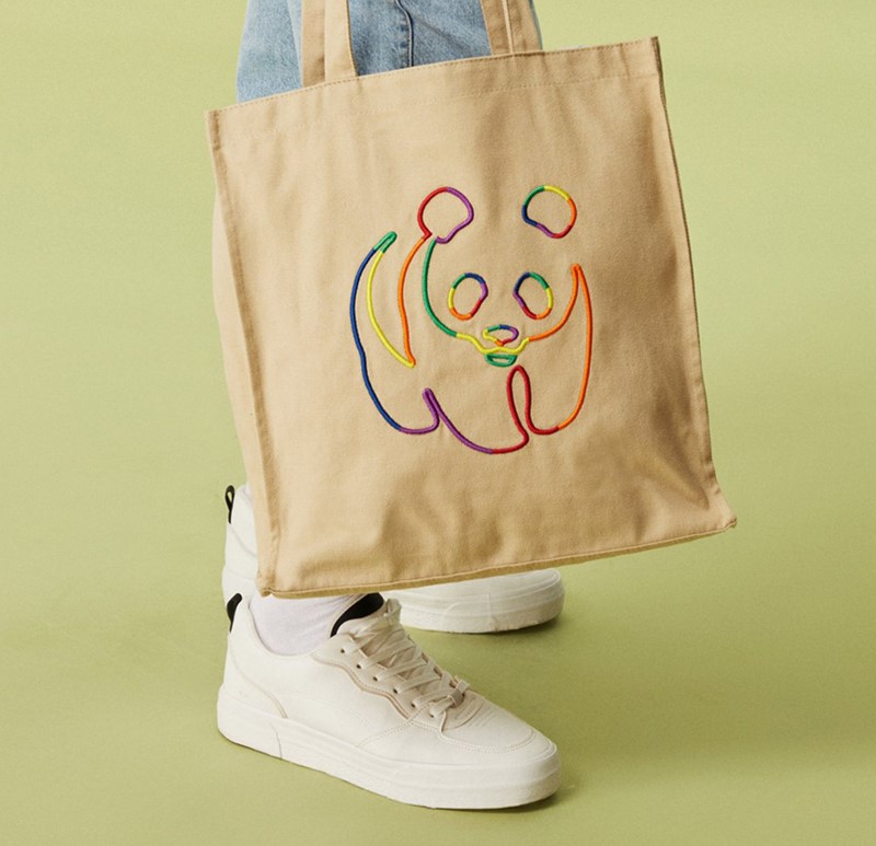 Deze grote WWF-shopper met geborduurd regenbooglogo is ideaal voor boodschappen, een dagje naar het strand of een boswandeling. Hij is gemaakt van sterk organisch katoen en gaat lang mee.