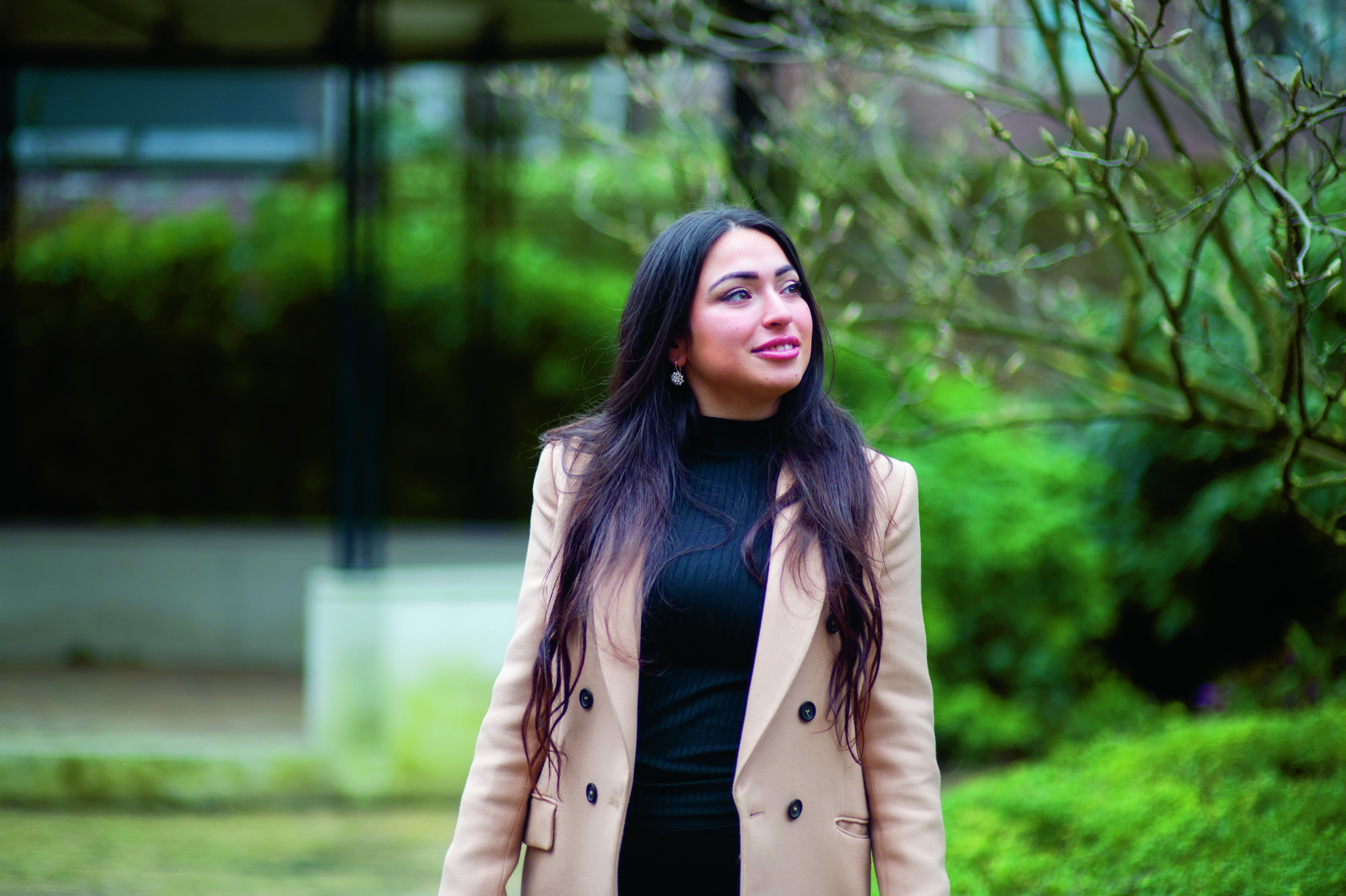 Ze vindt het gek dat we makkelijk de hele wereld over kunnen reizen omdat vliegtickets nauwelijks geld kosten. Eerder dit jaar werd ze uitgenodigd om voor een fotoshoot naar Venetië te vliegen. Het was een van haar eerste trips buiten Nederland en Turkije. ‘Ik heb wel even getwijfeld om alleen daarvoor met het vliegtuig te reizen, maar ik heb het toch gedaan omdat ik het belangrijk vind om het podium te pakken om mijn verhaal te vertellen. Het beste zou zijn als je binnen Europa de keus gewoon niet zou hebben om met het vliegtuig te gaan. Die fotoshoot hadden we ook prima in Nederland kunnen doen. Ik ga bijvoorbeeld heel graag naar het strand, in Kijkduin of Scheveningen. Ik hou enorm van de stad, maar zonder groen en ruimte zou ik niet kunnen.’ Ze kijkt peinzend naar buiten en vervolgt: ‘Wat voor vliegreizen geldt, gaat ook op voor vlees eten. Dat is zo absurd goedkoop. Waarom toch?’ Ze ziet geen oplossing in het rücksichtslos de veestapel halveren, zoals sommige politieke partijen willen. ‘We moeten boeren helpen met omschakelen of omscholen. De prijzen voor melk en vlees moeten hoe dan ook omhoog. Het is niet anders. En die vleesvervangers zijn ook hartstikke lekker.’