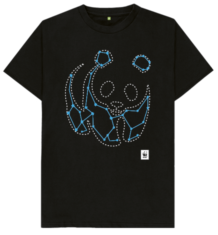 Uit de Earth Hour-lijn komt dit toffe zwarte t-shirt met de panda als sterrenbeeld op de voorzijde. De achterzijde is volledig zwart. In heren-, dames- en kindermodel, diverse maten. 100% organisch katoen. Let op: er is een gelimiteerde oplage van dit t-shirt, dus wees er snel bij.